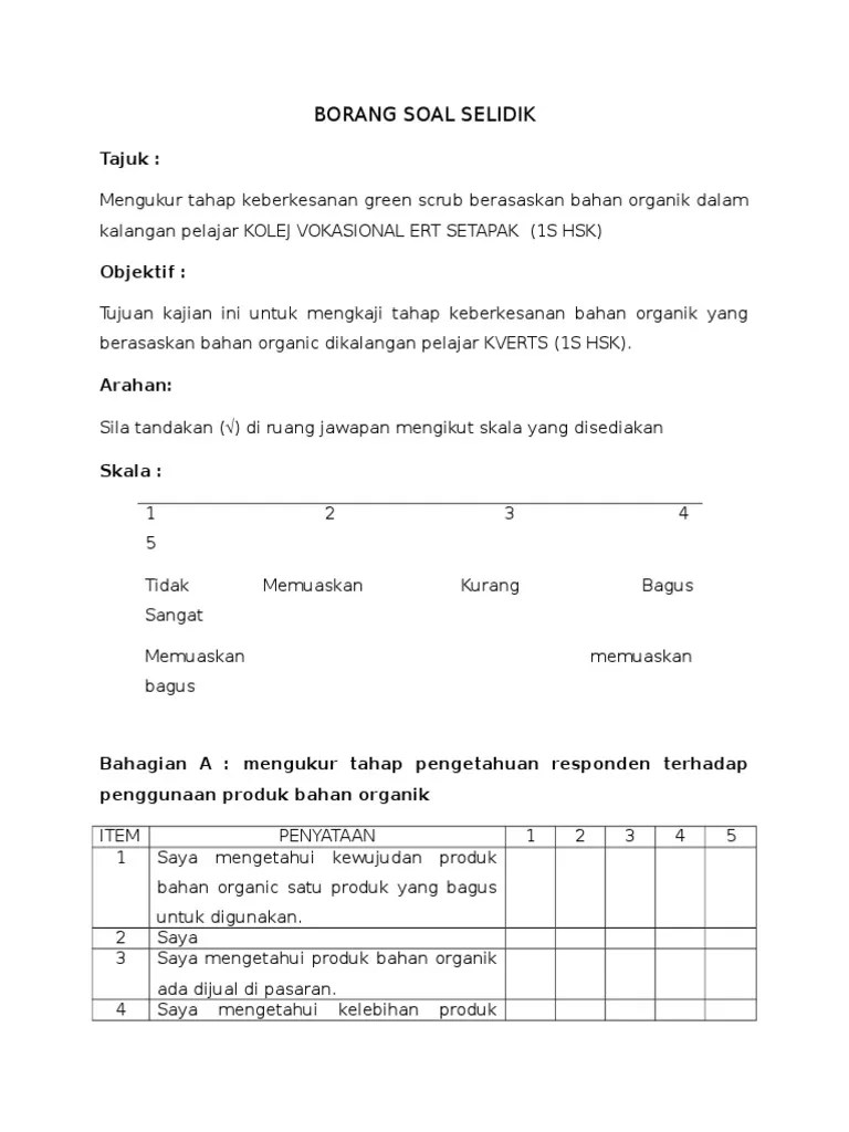Contoh Instrumen Kajian Soal Selidik / Contoh Borang Soal Selidik Geografi Pemanasan Global